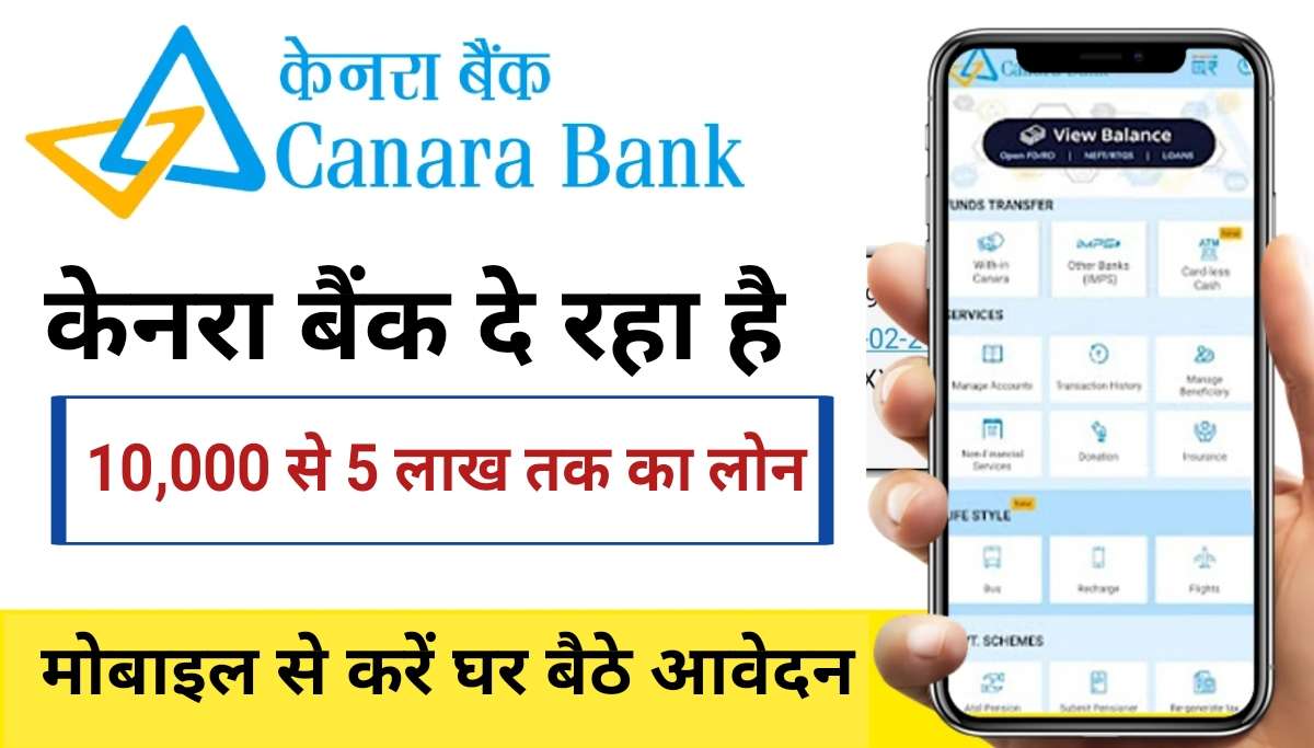 यदि आपको लोन लेने की आवश्यकता पड़ गई है तो अब आपके लिए एक बड़ी खुशखबरी है केनरा बैंक अब आपको मात्र 5 मिनट में ₹10000 से लेकर 5 लाख रुपए तक का लोन उपलब्ध करवा रही है। अगर आपकी आयु 21 वर्ष से लेकर 60 वर्ष के बीच है तो आप केनरा बैंक में पर्सनल लोन लेने के लिए एलिजिबल है।