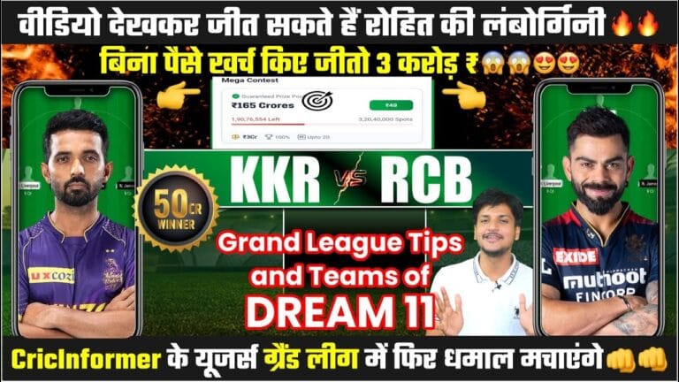 आज का IPL मैच RCB vs KKR ड्रीम 11 टीम बनाओ और जीत जाओ