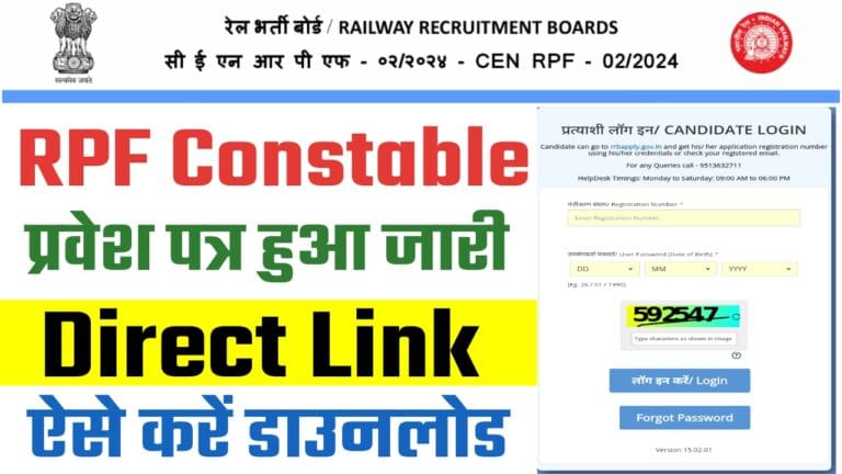 रेलवे भर्ती बोर्ड (RRB) ने रेलवे सुरक्षा बल (RPF) कांस्टेबल भर्ती 2025 के लिए एडमिट कार्ड जारी कर दिया है। … Read more