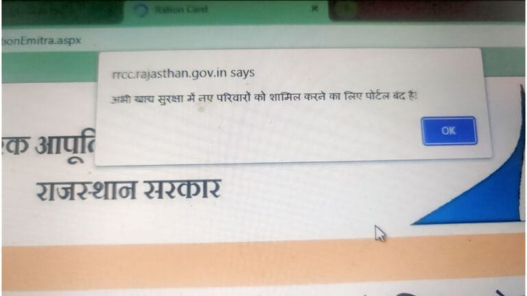 खाद्य सुरक्षा पोर्टल 2025: आवेदन फॉर्म में तकनीकी समस्या, आमजन परेशान