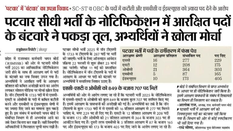 राजस्थान कर्मचारी चयन बोर्ड (RSMSSB) द्वारा पटवारी सीधी भर्ती 2025 का नोटिफिकेशन जारी होते ही आरक्षण वर्ग के पदों के … Read more