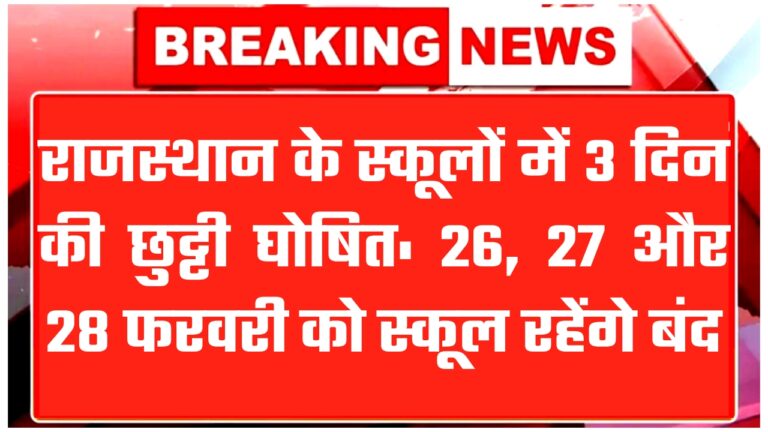 राजस्थान के स्कूलों में 3 दिन की छुट्टी घोषित, 26, 27 और 28 फरवरी को स्कूल रहेंगे बंद