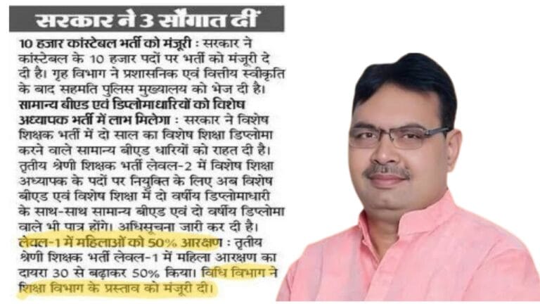 राज्य सरकार ने जनता के हित में तीन महत्वपूर्ण घोषणाएं की हैं। इनमें 10,000 कांस्टेबल भर्ती, विशेष शिक्षक भर्ती में … Read more