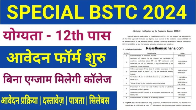 Rajasthan Special Bstc form Date 2024: राजस्थान में एक बार फिर से भारतीय पुनर्वास परिषद द्वारा Special bstc 2024 notification … Read more