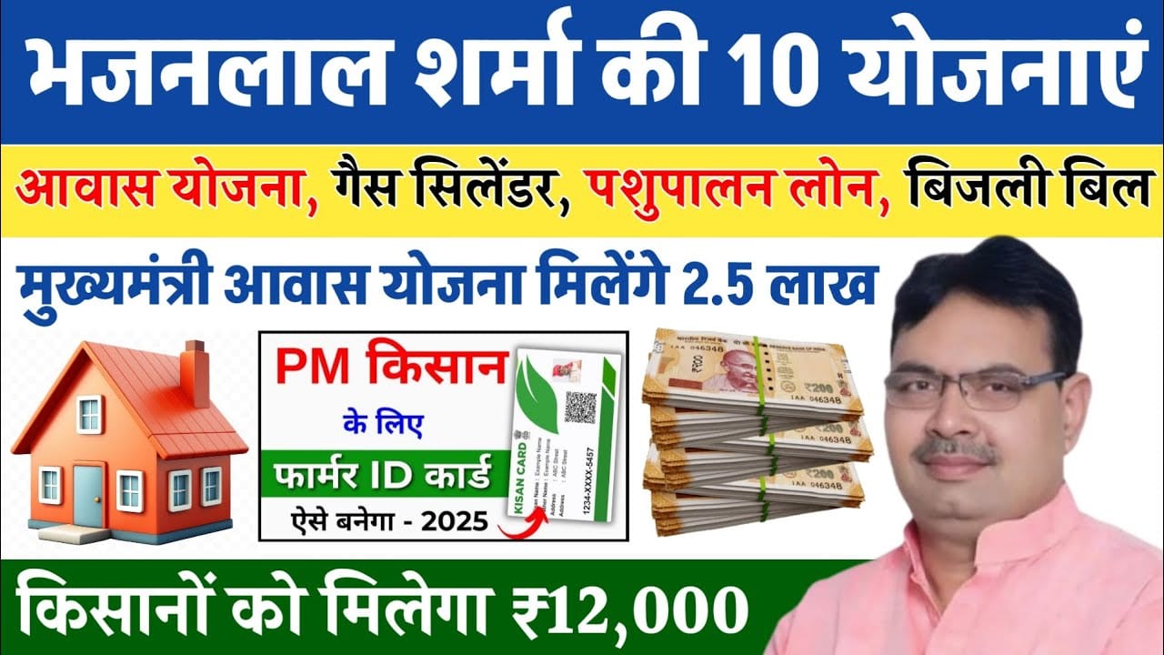 राजस्थान की भजनलाल सरकार ने राज्यवासियों के लिए कई कल्याणकारी योजनाएं शुरू की हैं। ये योजनाएं महिलाओं, किसानों, युवाओं, गरीबों और बेघर लोगों के लिए बनाई गई हैं। यहां हम राजस्थान की 10 सबसे महत्वपूर्ण सरकारी योजनाओं की जानकारी साझा कर रहे हैं।